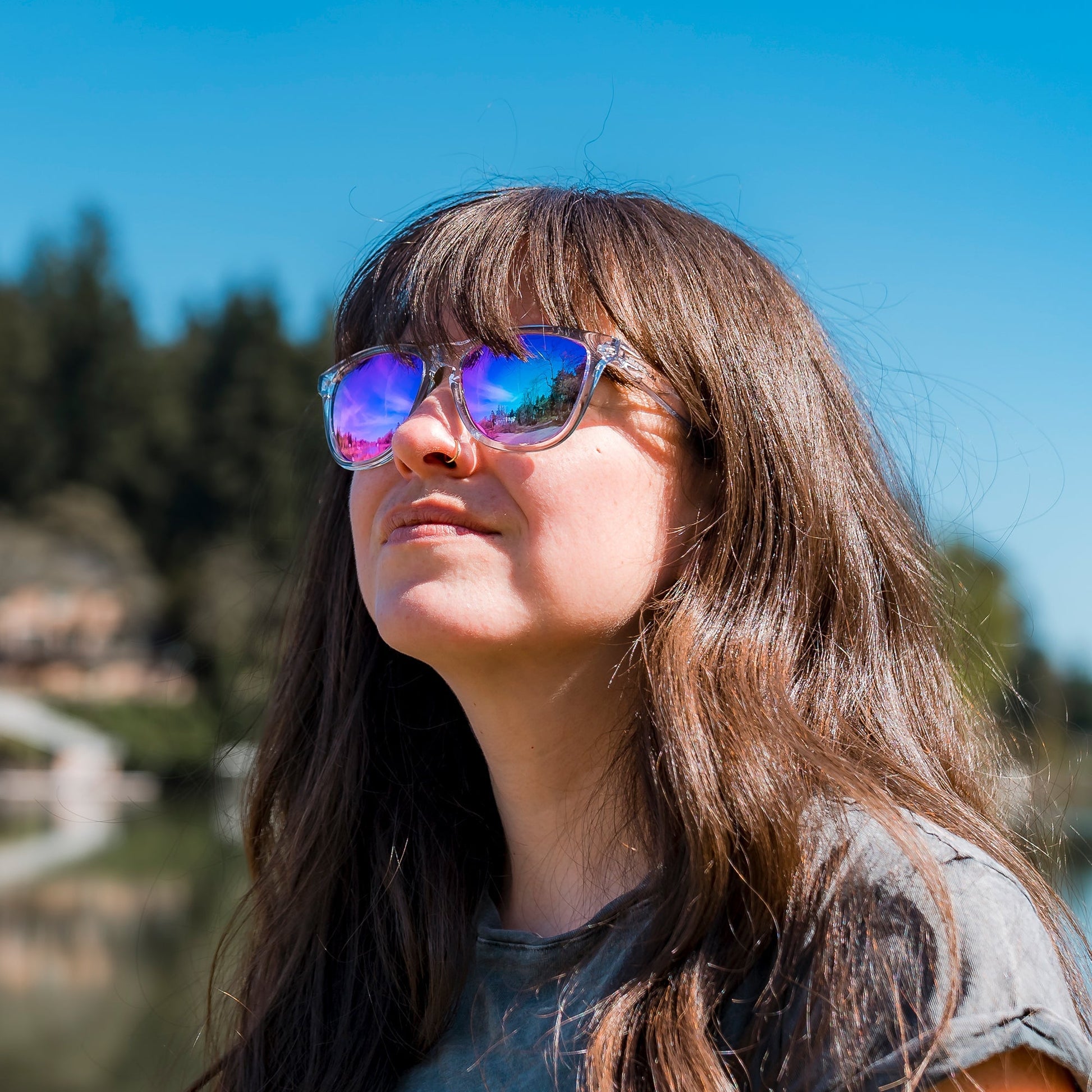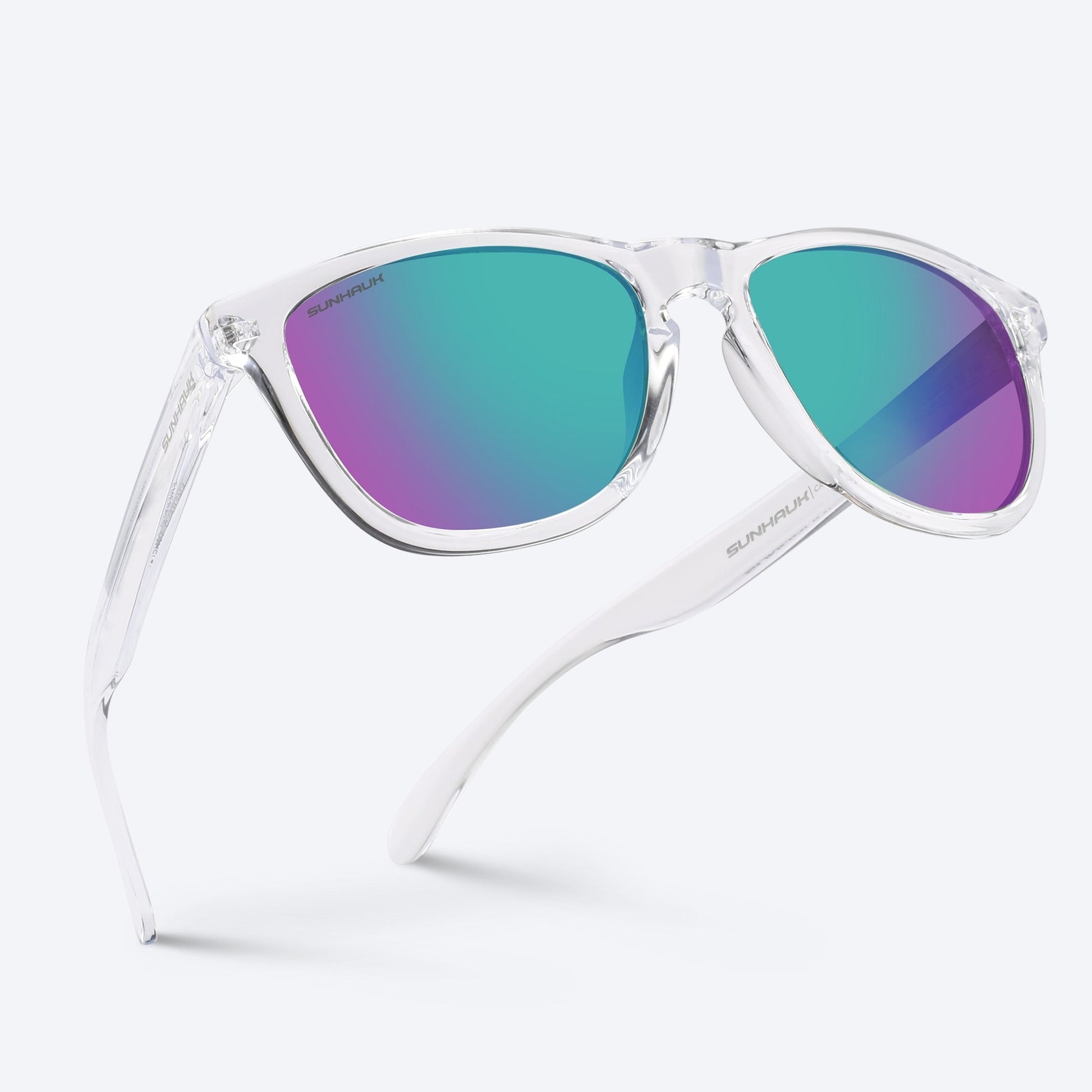 Featuring an iridescent blue-purple lens and a crystal-clear TR90 frame, these sunglasses offer a perfect blend of style and durability. Polarized UV400 Cat. 3 lenses deliver sharp clarity and superior sun protection, while triple-coated scratch resistance and oleophobic coatings ensure lasting performance. Designed for those who seek freedom and creativity, they elevate your vision and adventure.